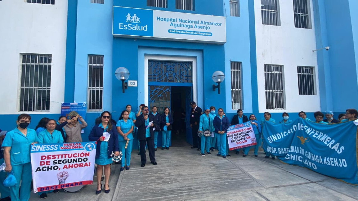 En Chiclayo, enfermeras y personal de salud se sumaron a la huelga convocada por el Sindicato de Enfermeras del Hospital Nacional Almanzor Aguinaga Asenjo.