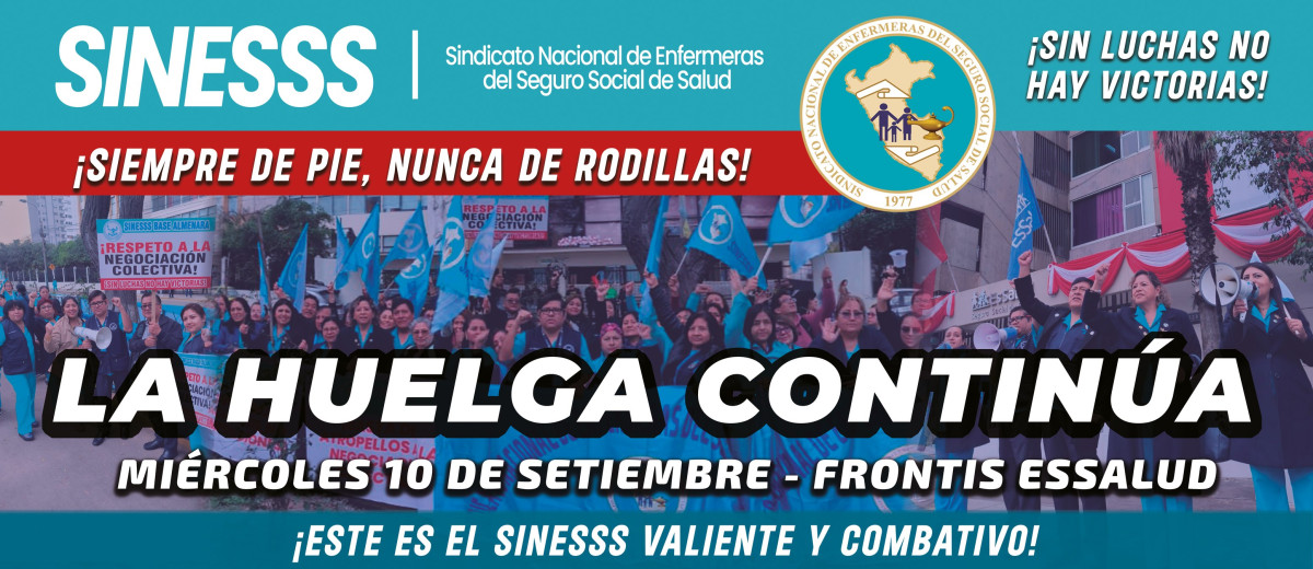 El Sindicato Nacional de Enfermeras del Seguro Social de Salud (Siness) y otros gremios de EsSalud iniciarán el martes 9 de septiembre una huelga nacional indefinida en reclamo de mejores condiciones laborales, el cumplimiento de compromisos pendientes por parte de la institución y medidas contra la corrupción. La protesta se desarrollará desde las primeras horas de la mañana, lo que implicará la suspensión de consultas externas y actividades académicas, aunque las áreas críticas continuarán funcionando con personal de turno.